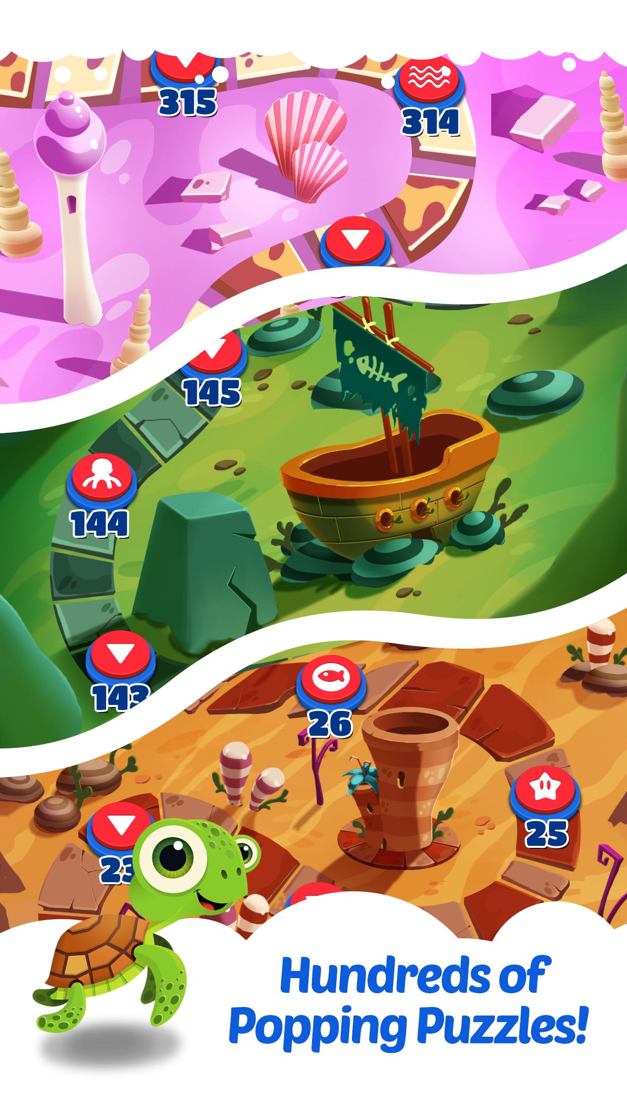 Jouez sur plus de 370 niveaux, de nombreux mondes sous-marins et une variété de modes de jeu amusants et difficiles, notamment: «Save the Starfish», «Collect the Top» et «Évitez le courant». Voyagez à travers le monde délicieux de Rockford Reef et aidez les Bubble Heroes à sauver l'étoile de mer!